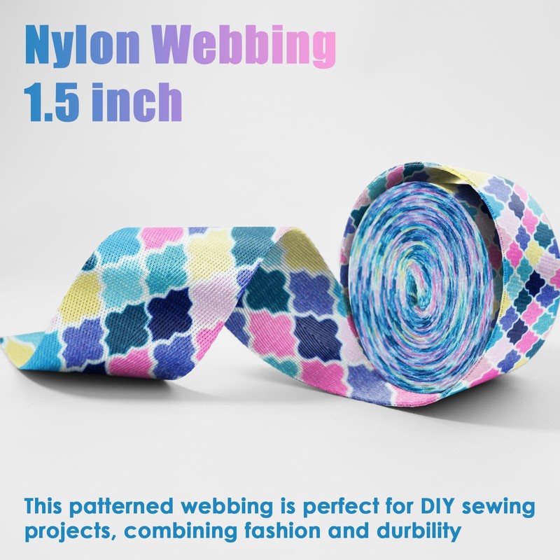 Nylon Webbing 1.5 Inch Printed Nylon Webbing Strap 3.3 10 Yards Multicolor Heavy Duty Thicken Webbing Ribbon Strapping for Backpack Bags, Seatbelt,Clothing Sewing, DIY Crafts & Projects Supplies
