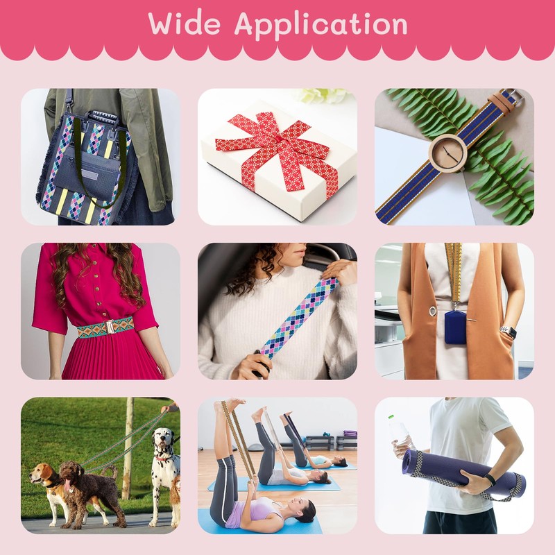 - 【Widely Used】These printed webbing straps are perfect for a wide range of applications, including purse straps, luggage straps, tote bags, belting, backpack straps, camera straps, dog leash and many other creative sewing projects such as hat ribbons, clothing decoration and earring crafts, ect.