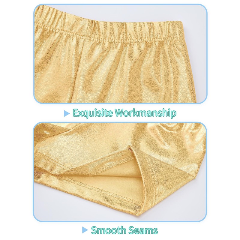 Nymphperi Gymnastics Leotards Size 6-7 Years Old Shiny Solid Gold Lightweight Bodysuits with Sparkly Shorts Suit for Children Theme Party