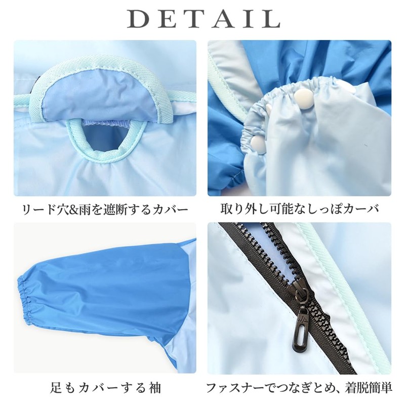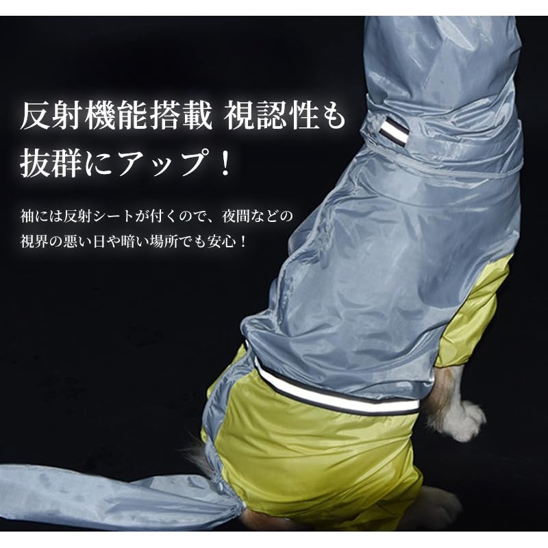 - (With Reed Holes & Reflective Function) There is a lead hole on the back of the pet raincoat and a cover to block the rain, so you can hang it on and go out on rainy days. The sleeves have reflective sheets for outstanding visibility. Safe for days with poor visibility, such as at night or in dark places