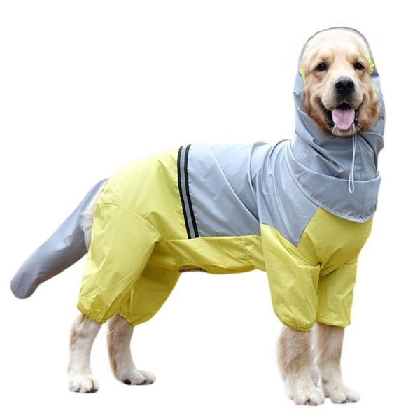 - (Adjustable Size with Drawstring) This dog raincoat comes in 5 sizes. It also has a draw strap on the head so you can fine adjust the size to fit medium and large dogs, such as Poodles, Golden Retriever and Labrador Retriever Special Note: Considering the growth of your dog, it is better to choose the larger size if it falls between two sizes