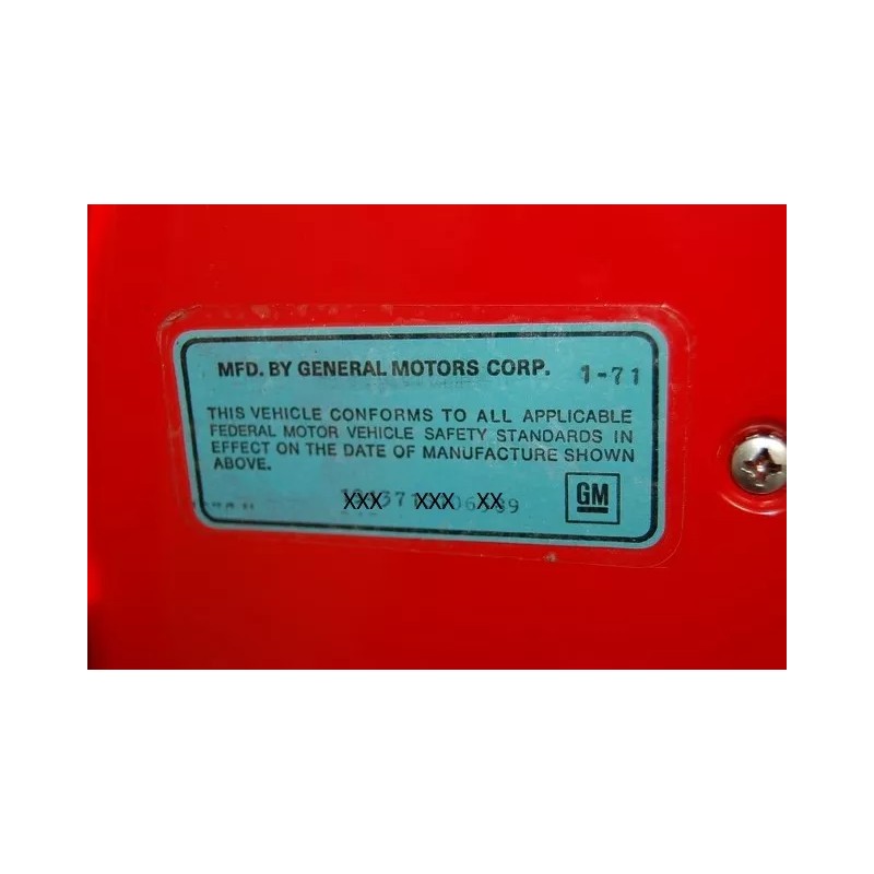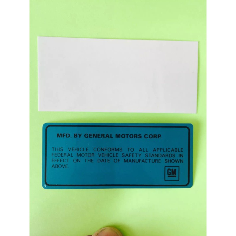 NYRM 68-76 gm Door Jamb tag w/ Clear Coat Cover Original Repro ID Number Decal new