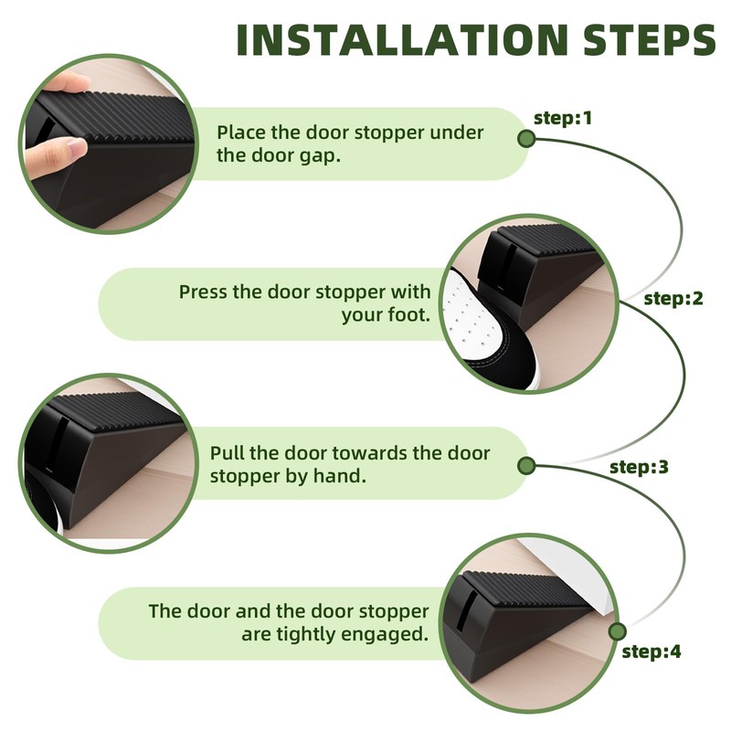 - Easy to Install: This tall door stopper features a user-friendly installation process—simply step on the raised foot pedal to compress the spring mechanism, then gently position it under the door for secure placement. Designed as both a durable exterior door stopper and versatile wedge door holder to keep door open, its intuitive operation requires no tools or complicated adjustments. The heavy-duty spring maintains consistent tension while the non-slip base ensures stability on any surface, making it ideal for high-traffic areas where reliable door control is essential.