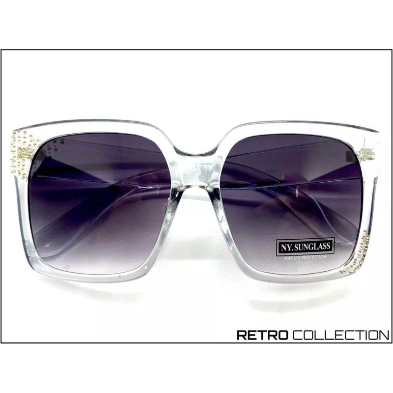 NYS Eyewear Overszied Exaggerated Retro Style SUN GLASSES Large Big Square Light Gray Frame