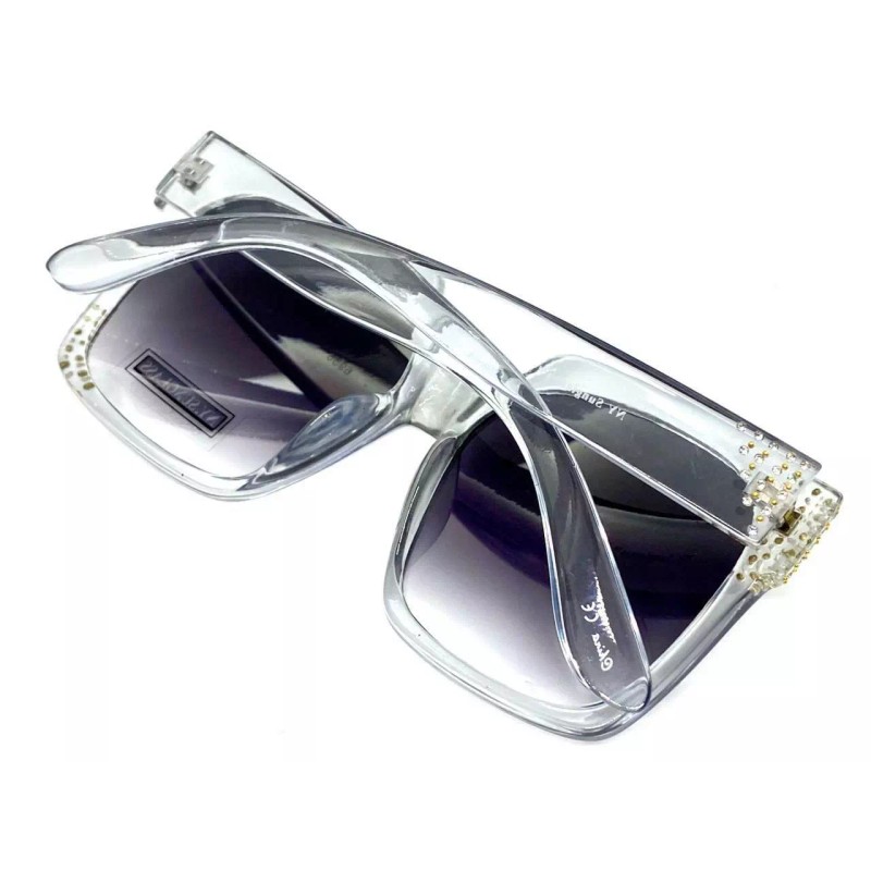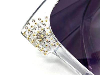 • FRAME COLOR:  Light Gray Transparent Frame Embellished with Tiny Sparkling Rhinestones and Gold Studs on the Corners