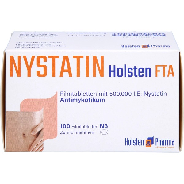 Ingredients: active ingredient per 1 tablet: 500,000 IU. Nystatin; adults and children from 6 years: for the therapy of fungal diseases in the gastrointestinal tract, especially during treatment with medicines that promote yeast fungus growth in the gastrointestinal tract (e.g. broad-spectrum antibiotics, corticoids, cytostatics): 3 times a day, 1 film-coated tablet. If necessary, the dosage can be increased. Children Under 6 years ol:The medicine is not recommended for use in children under 6 years. Type and duration of use: the tablets are taken whole after meals with a little liquid. The duration of use is 2 weeks or as long as the treatment with drugs that promote yeast growth lasts. If necessary, the treatment time can be extended.