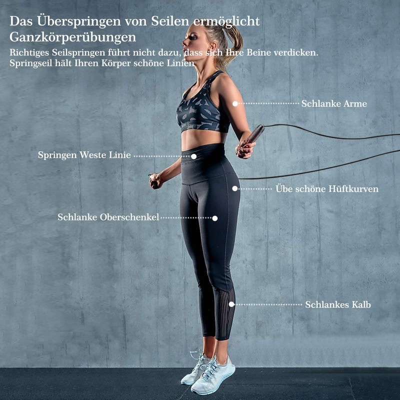 - Perfect for aerobic exercise: the skipping rope is one of the most effective aerobic exercises. You can jump rope in different places, anytime and anywhere. The calories you burn for 10 minutes of rope skipping correspond to jogging for 30 minutes, 50 minutes of yoga and 30 minutes to swim. With this skipping rope, you can train efficiently. You can move whole body muscle groups such as the hands, shoulders, waist, hips, legs, stomach and other parts of the muscle group.