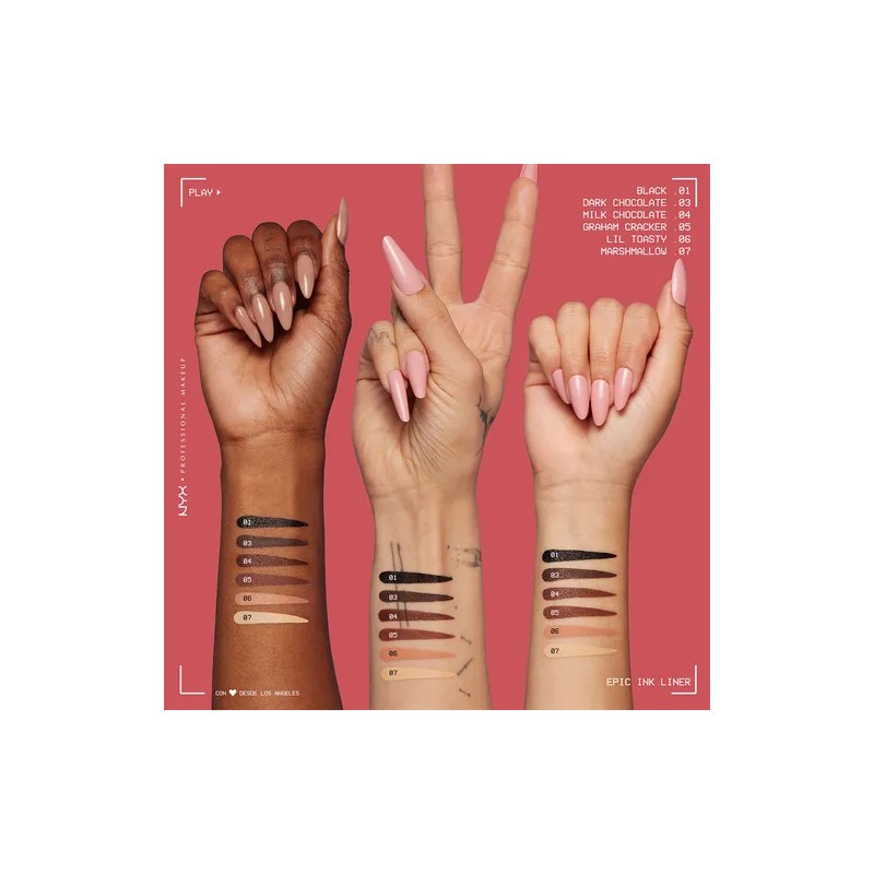 Reinventa tus looks y atrévete a explorar nuevos estilos con el Epic Ink Liner de NYX Professional Makeup. Es el momento perfecto para divertirte creando delineados gráficos o lucir un look sofisticado y elegante.