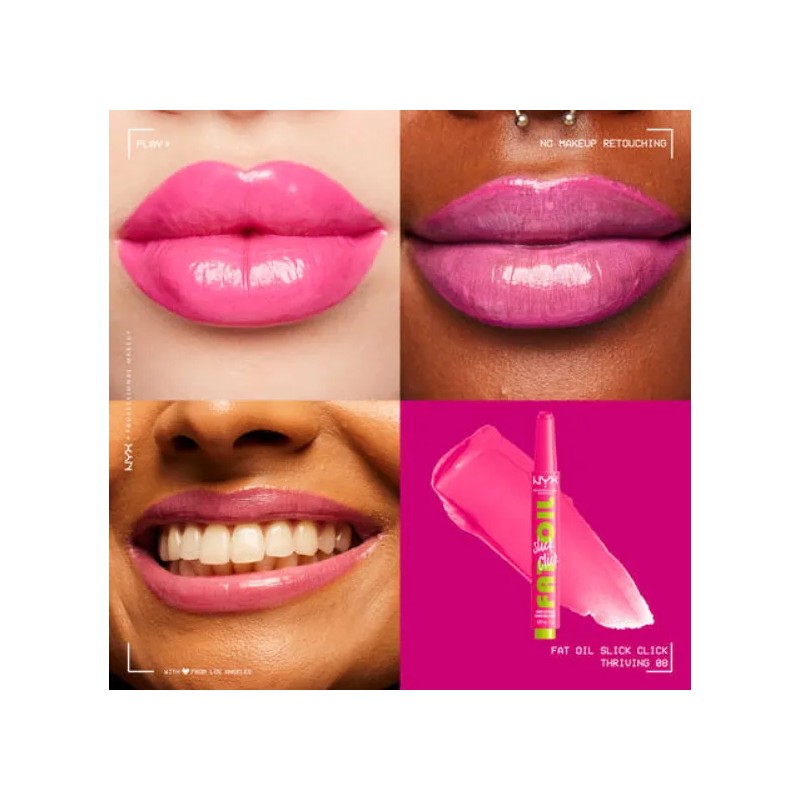 Consigue unos labios hidratados y con un toque de color con el Bálsamo Brillante Fat Oil Slick Click de NYX ✨. En el tono Thriving - rosa, es perfecto para un acabado jugoso. 💖
