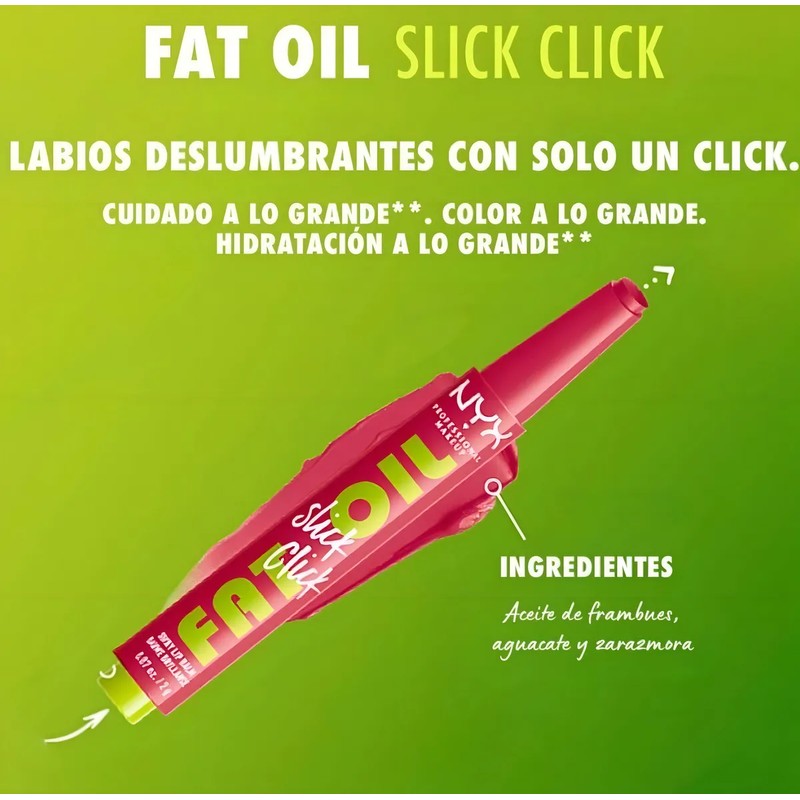 Consigue unos labios con un brillo impactante con el Fat Oil Slick Click de NYX ✨. Su fórmula hidratante en el tono DM Me - Magenta es ideal para un acabado radiante. 💖