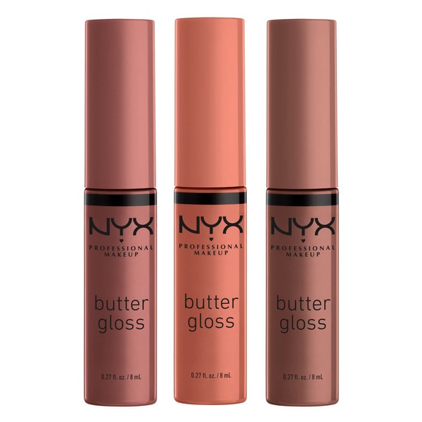 NYX PROFESSIONAL MAKEUP NYX PROFESSIONAL MAKEUP Butter Gloss Brown Sugar, Non-Sticky Lip Gloss - Pack Of 3 (Sugar High, Spiked Toffee, Butterscotch)