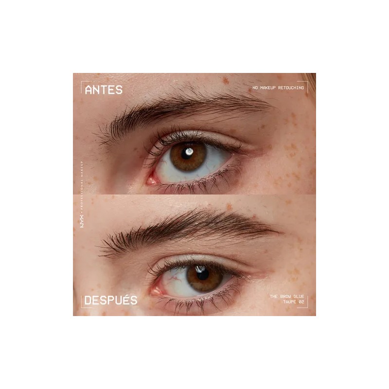 NYX Professional Makeup, The Brow Glue, 5gr. Tono: Medium Brown. Gel fijador de cejas, 16 horas de duración, no pegajoso, sin transferencias, resistente al agua y sin residuos