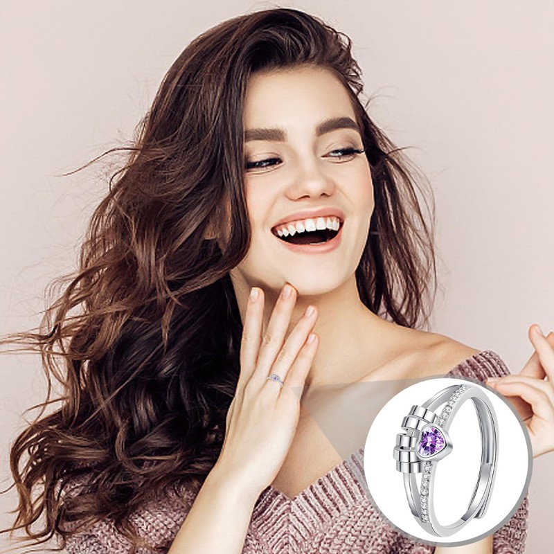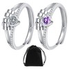 NyxSeat 2 herzförmige Perlenringe, 1 Samtbeutel, drehbarer herzförmiger Ring mit weißen und violetten Edelsteinen, verstellbarer versilberter Ring, Schmuck
