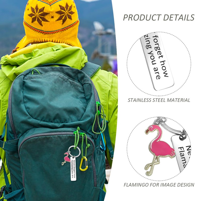 - Exquisite design: the flamingo keychain is designed with the image of a flamingo and a rectangular strip of inspirational quotes, showing its unique appearance and delicate texture. With its elegant and attractive appearance and inspirational words, it makes a great addition to your home decor or as a gift.