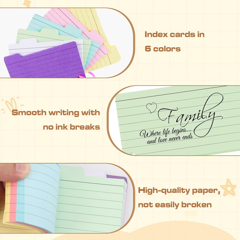 - A MULTIFUNCTIONAL PLASTIC RING: Each index card has a small hole at the top that allows a plastic ring to be easily passed through, so you can either organise the index cards together or pull them out individually if needed.
