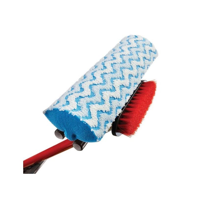 • Dense microfiber wave sponge scrubs deep without damaging floors