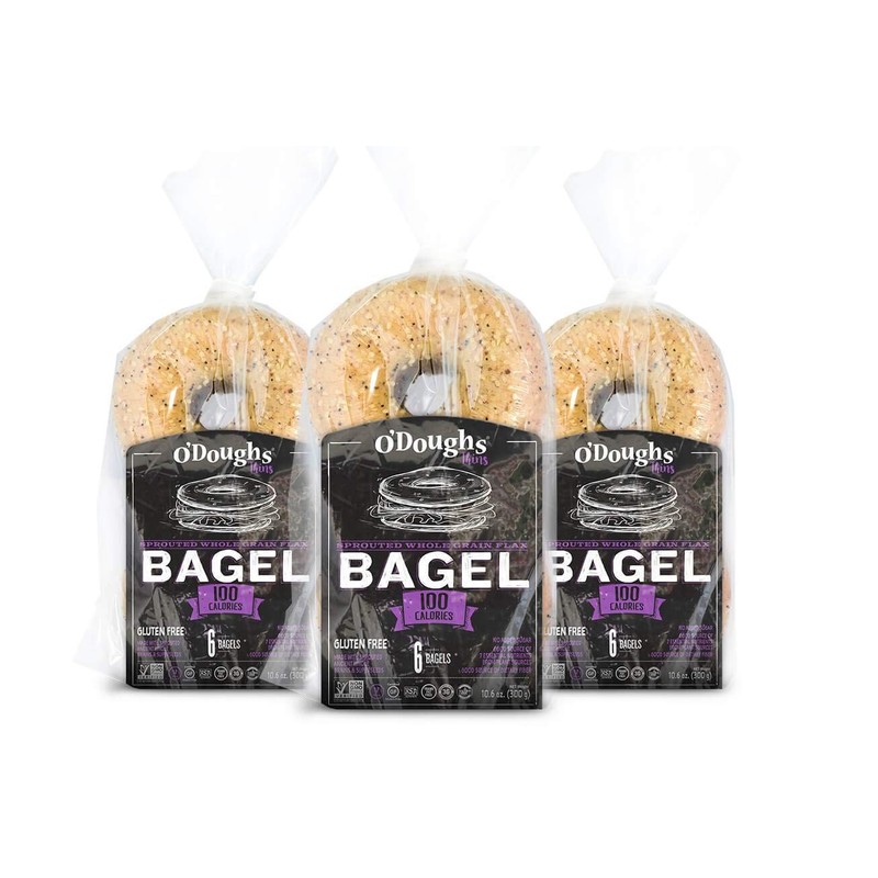 O'Dough Thins Gluten Free Bagels, Sprouted Whole Grain Flax, 100 Calorie Bagels, Presliced, 10.58 Ounce [3 Packs]