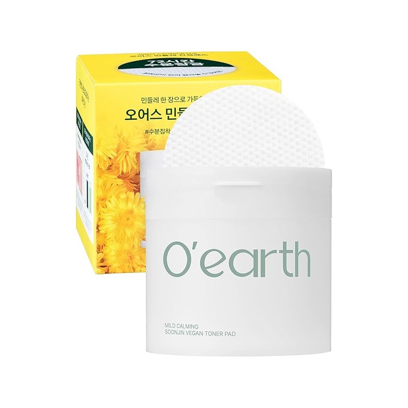 O’Earth Mild Calming Vegan Toner Pad - Dual-Textured, Exfoliating, Soothing, Moisturizing with Dandelions & Hyaluronic Acid, EWG Green Certified, 90 Pads