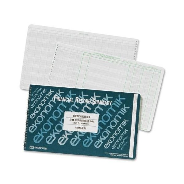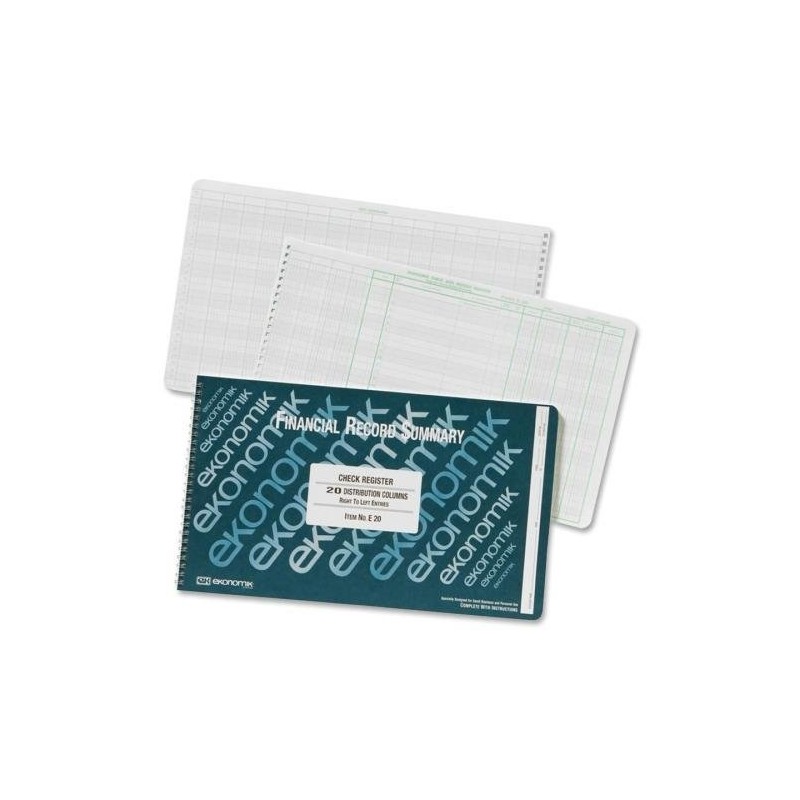 o Ekonomik o - Check Register Form,20 Col.,8-3/4"x14-3/4",GN Ink/WE Paper