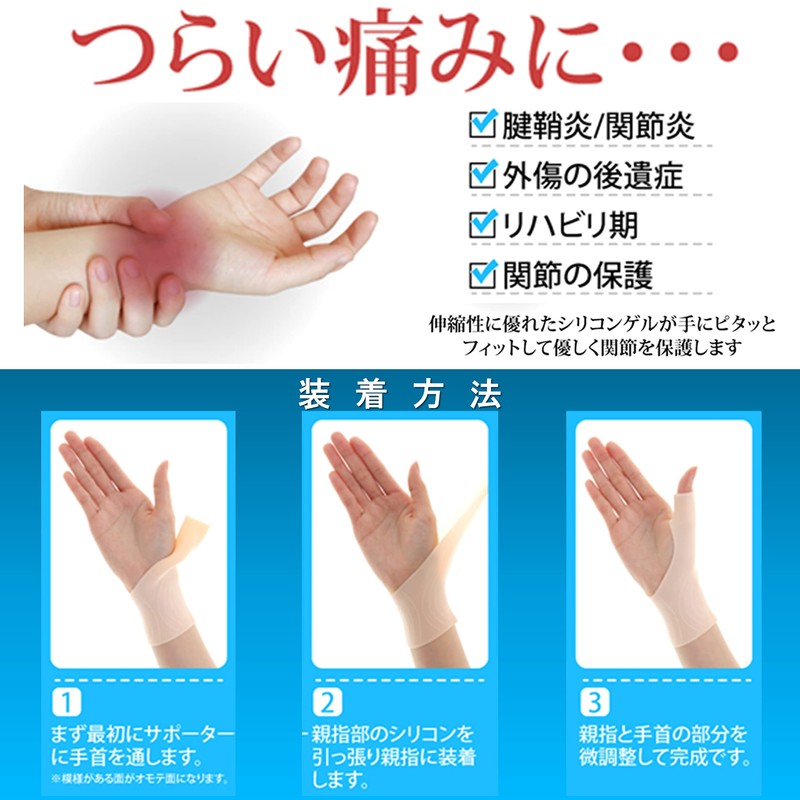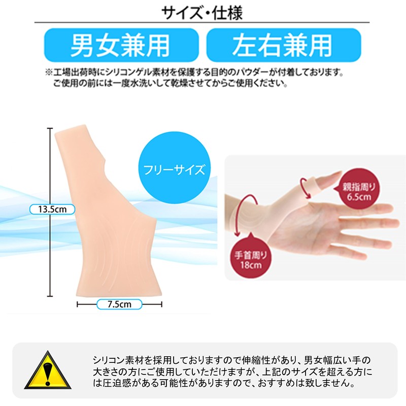• (Color) Adopts beige that blends with the color of the skin and is inconspicuous. Silicone gel wrist / thumb supporter will not stand out when you wear it during work/housework/nursery/sports