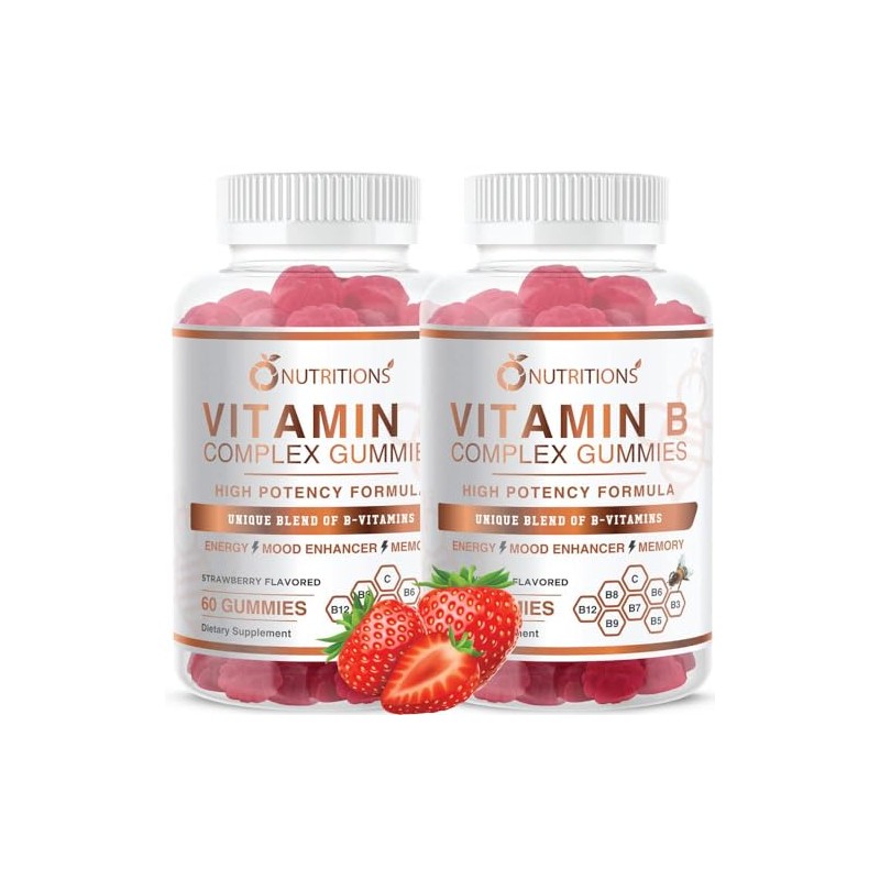 O NUTRITIONS O NUTRITIONS Vitamin B Complex Vegan Gummies with Vitamin B12, B7 as Biotin, B6, B3 as Niacin, B5, B6, B8, B9 as Folate for Stress, Energy and Healthy Immune System (2 Pack)