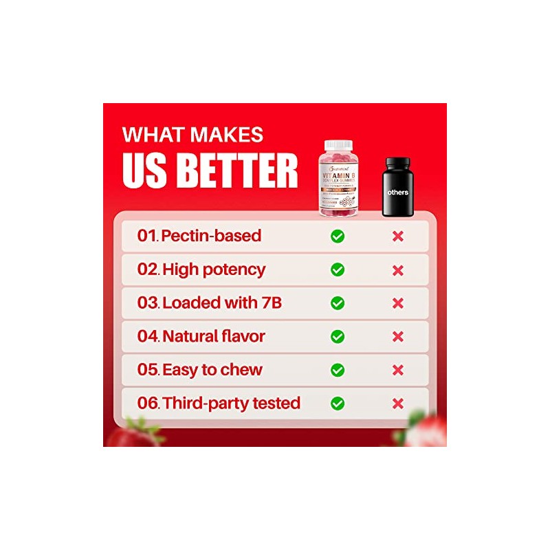 - POTENT AND DELICIOUS B-COMPLEX VITAMINS :These delicious gummy are much easier to get your daily vitamin B's compared to swallowing pills. Our formula is so potent you just need ONE gummy a day!