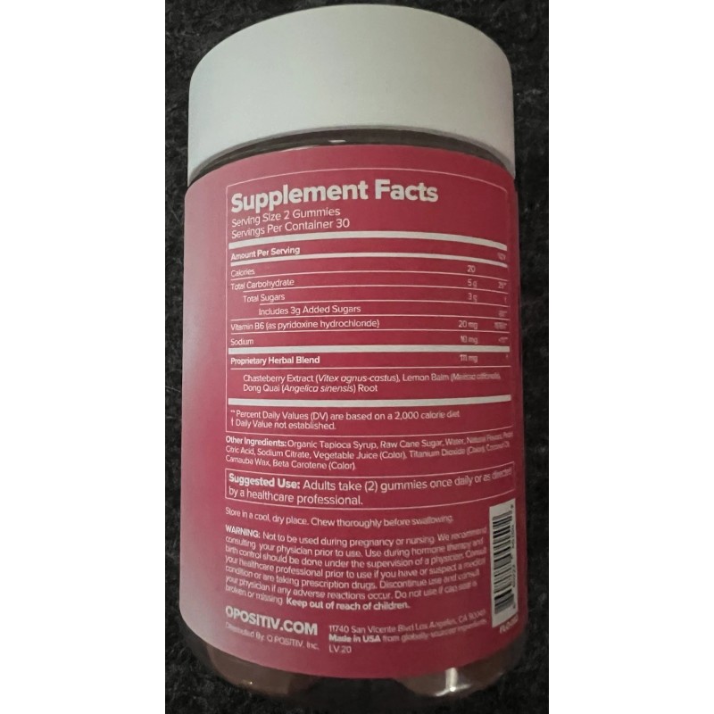 O Positiv New FLO PMS Gummy Vitamins Vegan Dietary Supplement Premenstrual Symptoms