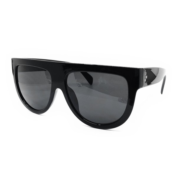 O2 Eyewear 6520 Oversize XL Mirror Tint Havana Shadow Style Designer Flat Top Womens Mens Sunglasses (SHINY BLACK, XL)