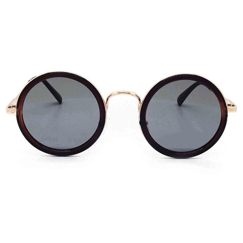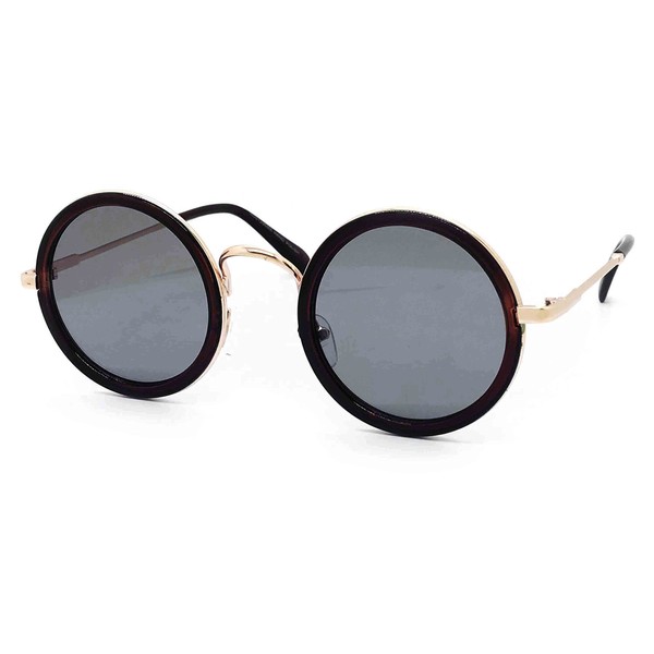 O2 Eyewear 81296 Premium Vintage Classic Nerd Hippie Retro Round Circle Womens Mens Tinted Sunglasses (BROWN, 54)