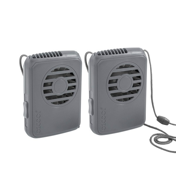 O2COOL Deluxe Necklace Fan, Battery Powered with Adjustable Lanyard, 2 Pack, Grey