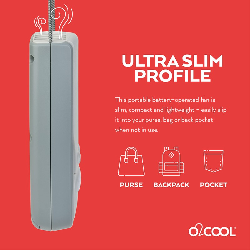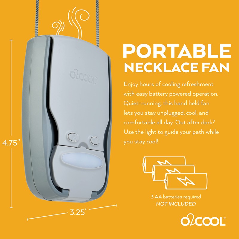 O2COOL Battery Powered Necklace Fan With LED Light, Lanyard, For Personal Cooling And Safety