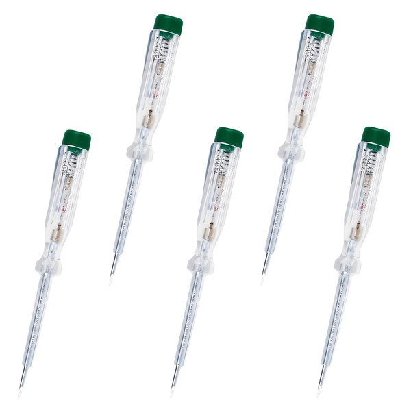 O4L 5 x Single Pole Voltage Tester with Fixed Integrated Glow Lamp, Screwdriver Blade and Metal Clip