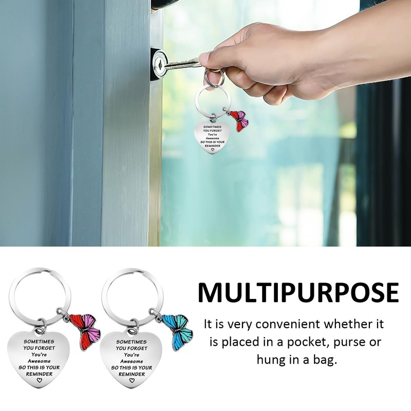 OAAO 2 Pieces of Butterfly Keychains, Inspirational Keychains for Women, Motivational Gifts, Stainless Steel Keychains, Inspirational Gifts for Friends and Colleagues