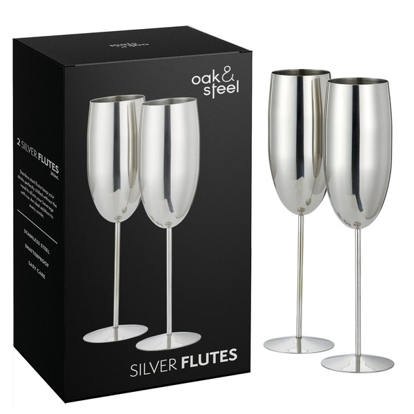 - 🥂 ELEGANT SILVER DESIGN: Oak & Steel silver champagne glasses embody modern elegance and take your celebrations to a new level of sophistication.
