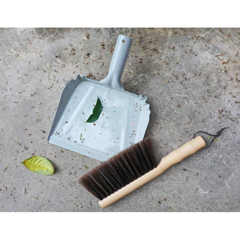 The perfect metal dust pan and brush designed for outdoor and indoor use.