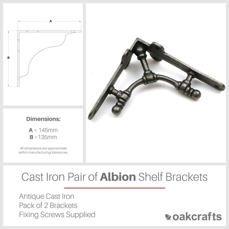 Oakcrafts - Pair of Albion Antique Cast Iron Shelf Brackets - 145mm x 135mm