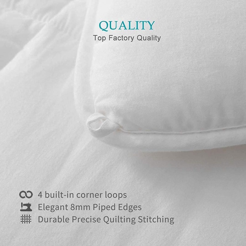 - đź’¤ TOP QUALITY & DURABLE - Crafted with care, these comforters are fade resistant, wrinkle resistant and durable. Quilted with built-in corner tabs to easily attach cover. Sewn through box-stitching design secures the filling in place without any clumping or cool spots. The double brushed surface is delightful against bare skin. Machine washable and dryable. Our cotton comforter blooms and softens with use, it is meant to last!