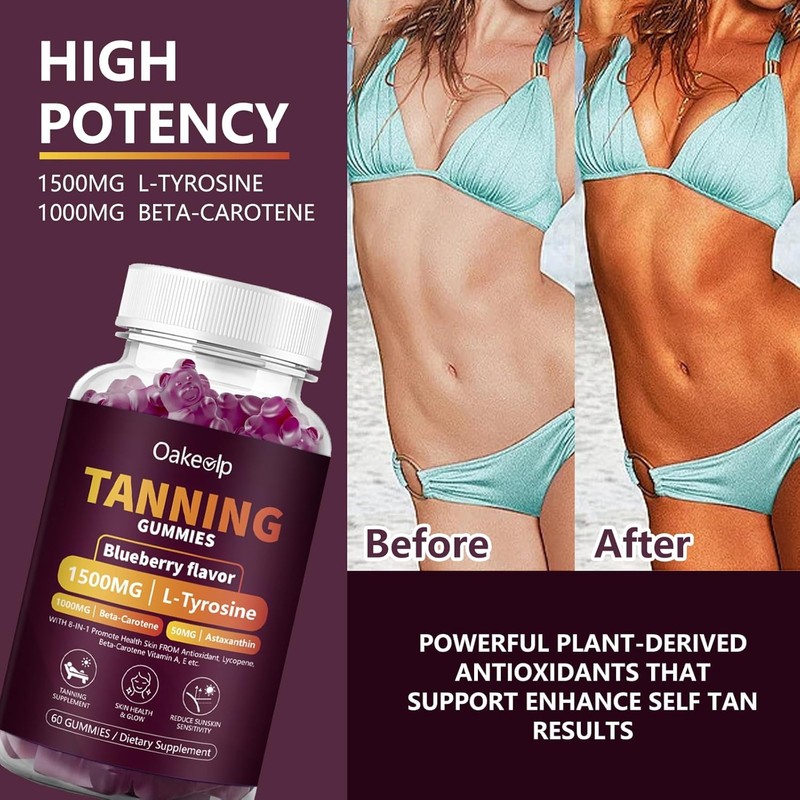 - 【Natural Tanning Supplement】: These gummies are made with three powerful, natural ingredients—Beta-Carotene, Astaxanthin, and L-Tyrosine. These natural pigments are found in a wide range of plants and help promote natural skin tanning for a healthy, even skin tone.