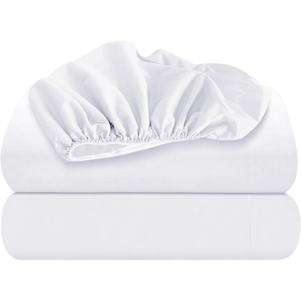 Oakias Full Fitted Sheets White – Pack of 2 Bottom Sheets – Soft Brushed Microfiber Elastic Sheets for Bed – Shrinkage & Fade Resistant Sheets – Machine Washable