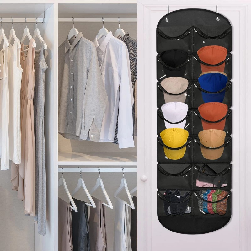 MULTI-PURPOSE - The hat holder organizer for door or wall is not only a better organization of baseball caps, but also a good storage for toys, purses, snacks, socks, scarves, gloves and any other household items as you wish