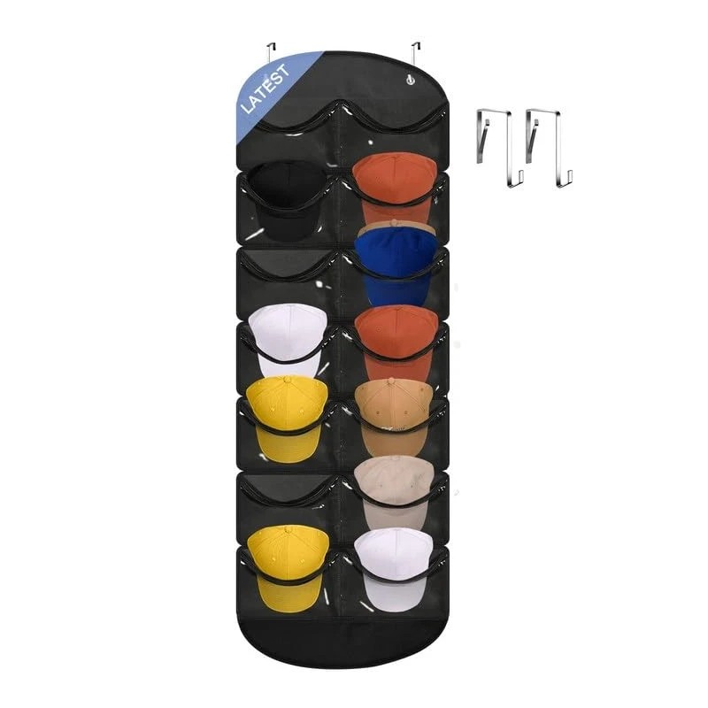 DEEP PVC POCKETS - Owkjar hat rack with clear deep pockets, makes it easy to see and grab the cap you need. The 8.5x7 inch extra deep PVC pockets are suitable for all caps, including adjustable baseball cap, fitted cap, truck driver cap, hobbit cap, sun hat, golf cap, mini cap