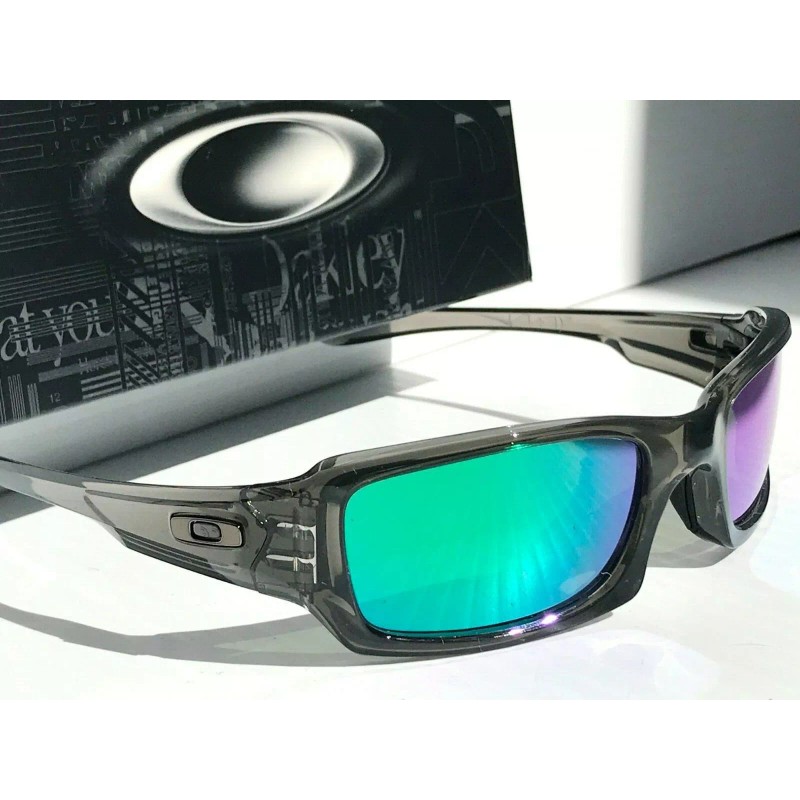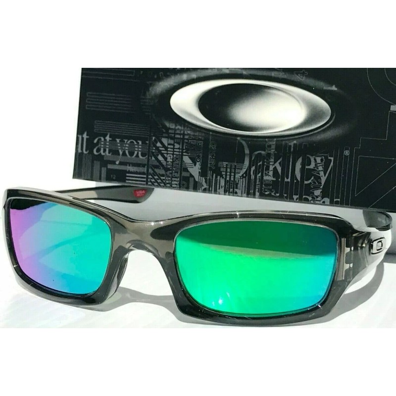 This is a custom Fives Square with two lens set including: Oakley Grey lens and Galaxy POLARIZED Jade Mirrored Lens material filters out all UVA, UVB and UVC up to 400nm. This is Glare stopping technology that produces the best optics. These are designed to resist scratches and live up to daily life demands. Optimized peripheral vision and side protection. Optical precision and performance that meet standards for impact resistance for sunglasses.