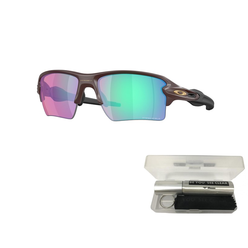 Oakley OO9188 Sunglasses Bundle: OO 9188 FLAK 2.0 XL 9188J8 Matte Grenache/Prizm Golf Policarbonate Standard and Eyewear Cleaning Kit