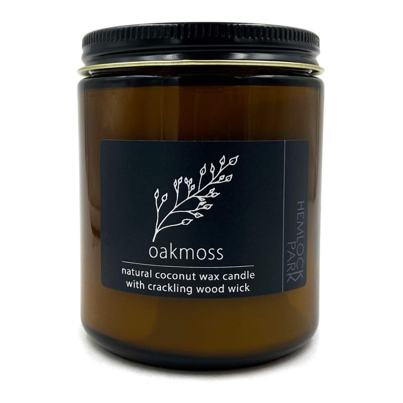 Oakmoss Crackling Wood Wick Candle Made with Organic Coconut Wax | 8 oz Jar