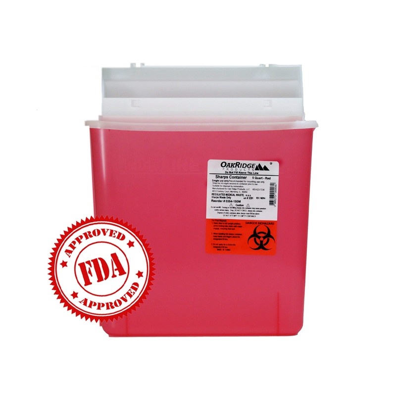 Oakridge 5 Quart Sharps Container (20 Pack) Mailbox Style lid | Business Bundle | Full case
