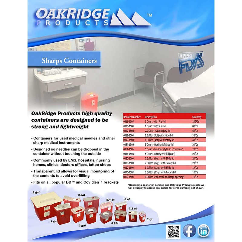 - USA MADE - CDC APPROVED - Sharps Containers from Oakridge Products Feature a Simple to Operate POP-UP lid Easy to Open to Dispose of Waste