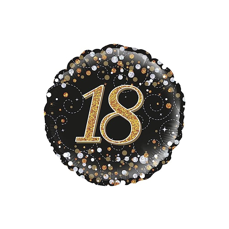 Oaktree 18" 18th Sparkling Fizz Birthday Black & Gold Holographic