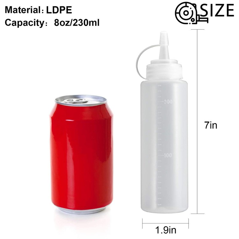 OAMCEG 12 Pack Ketchup Squeeze Bottles 8 OZ Plastic Condiment Squeeze Squirt Bottles and Caps with Discrete Measurements, for Ketchup, BBQ, Sauces, Syrup, Condiments, Dressings, Paint - BPA Free