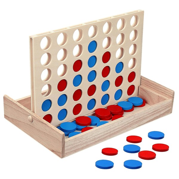 Oasis 4 in a Row Fun Strategy Board Game with Colourful Wooden Tiles 42 Positions Blue and Red Glazed Wooden Tiles Natural Wood Base