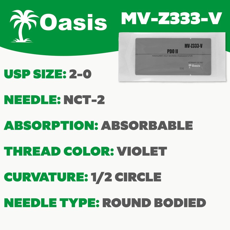 Oasis PDO (Polydioxanone) Surgical Suture, 2-0, (CT-2) 1/2 26mm Round Bodied Needle, 75cm, 12/Box, Veterinary Use
